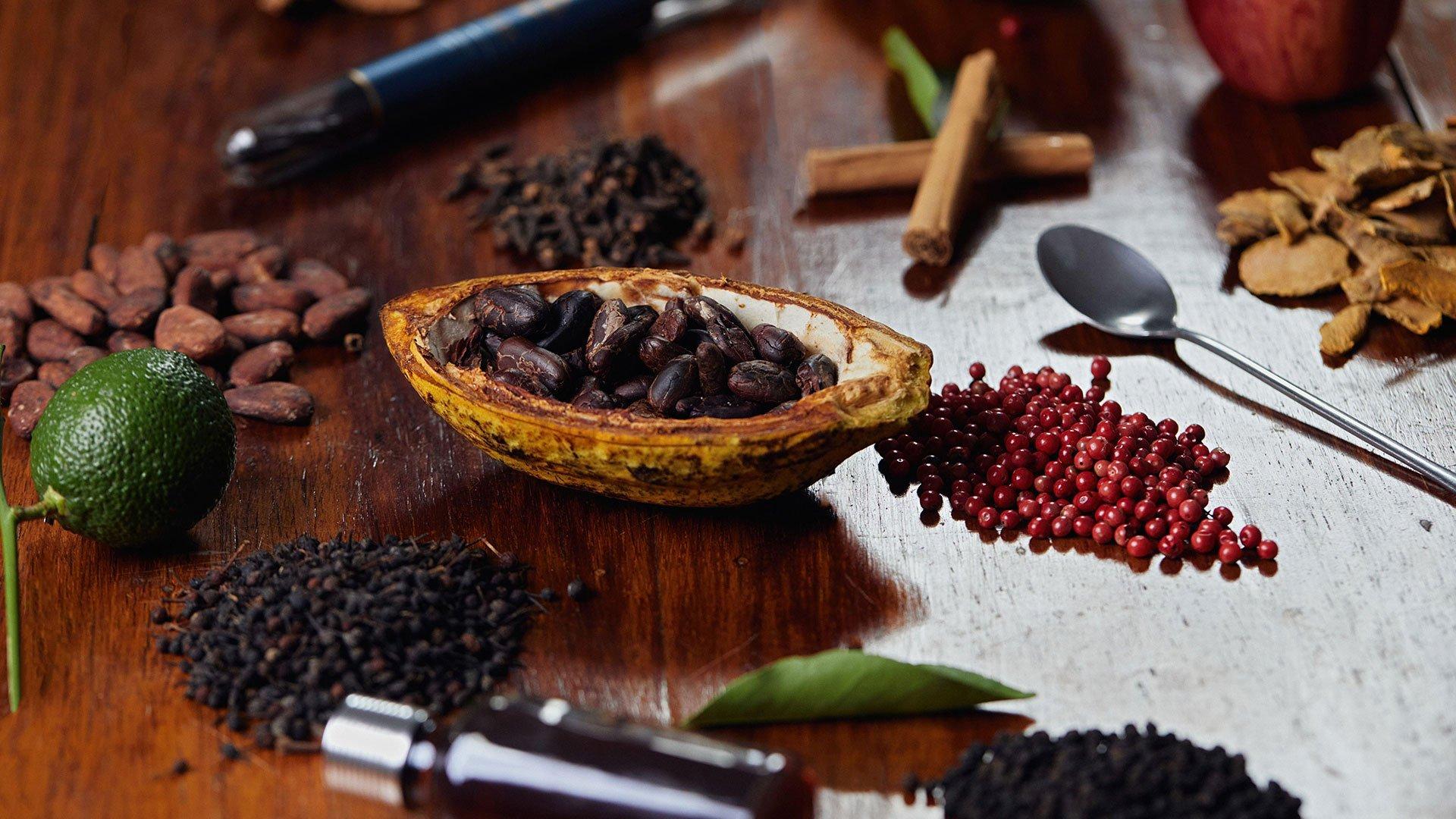 Vanilla, flavours, tea, coffee, herbs, spices, nuts, dried fruits