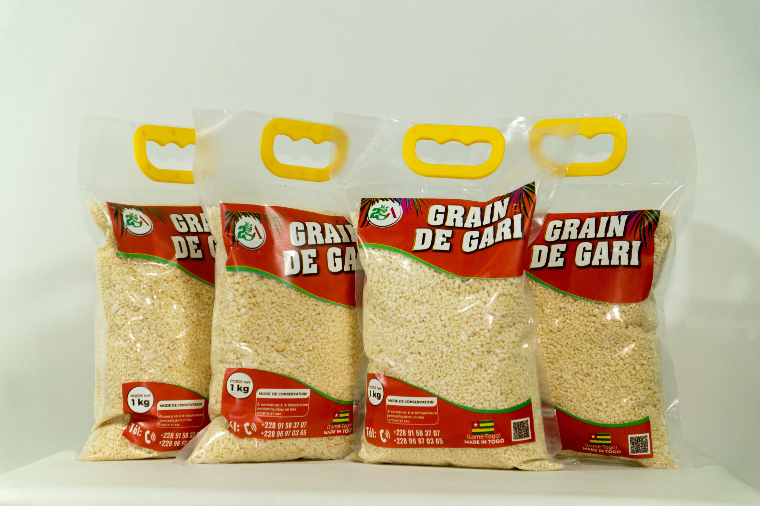 Processing of cassava into gari, tapioca, bread flour, cassava paste.