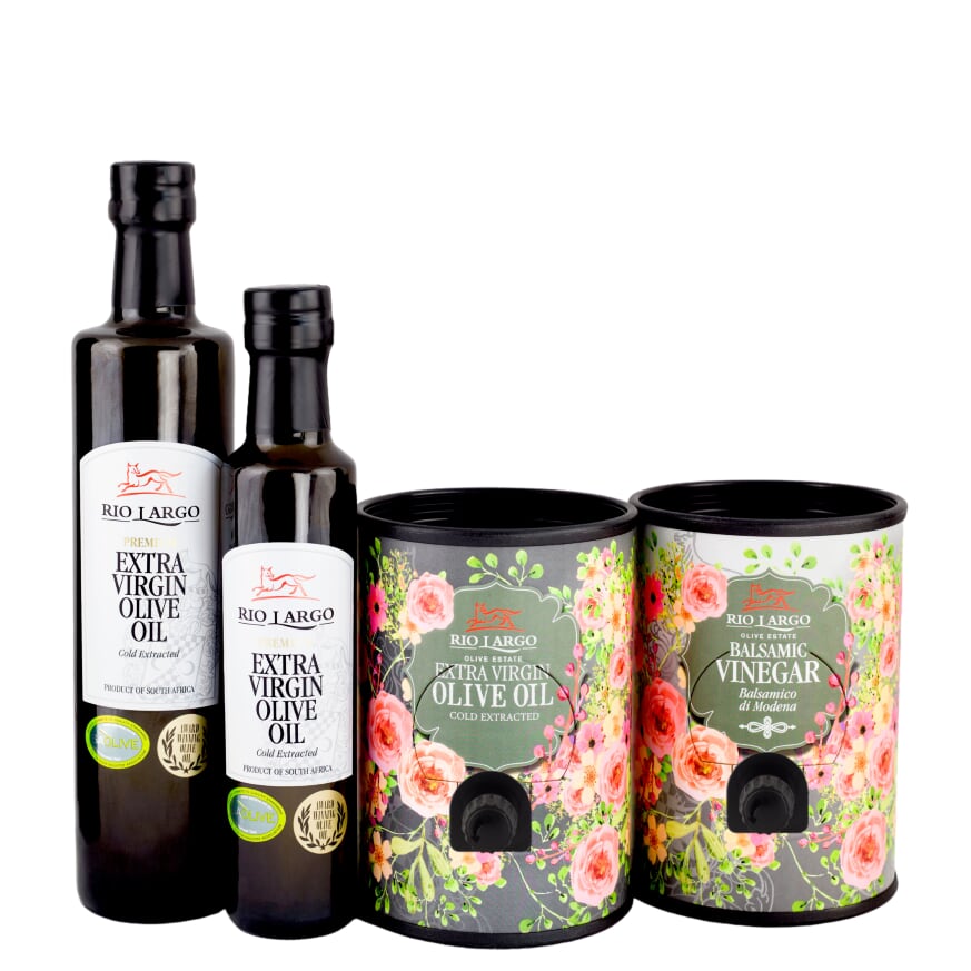 RIO LARGO, situated in the Western Cape of South Africa, is owned by Nick and Brenda Wilkinson, and comprises olive orchards, vines, and a state-of-the-art OLIOMIO olive processing and bottling plant. RIO LARGO EXTRA VIRGIN OLIVE OIL is a blend of three cultivars (Frantoio, Leccino and Coratino) grown and pressed on the estate. Each cultivar is handpicked, pressed, and stored separately in nitrogen sealed stainless steel tanks to maintain freshness.